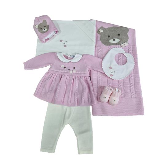 COPRIFASCE MAGLIA CON BOTTONI SULLA SCHIENA E PANTALONE CLINICO NASCITA BIMBO 100% LANA MADE IN ITALY RICAMATO A MANO ROSA/TORTORA/LATTE AURORA