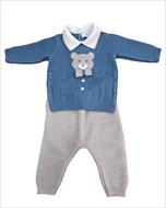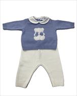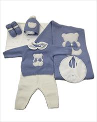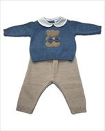 COMPLETO 2PZ MAGLIA CON BOTTONI SULLA SCHIENA E PANTALONE CLINICO NASCITA BIMBO 100% LANA MADE IN ITALY RICAMATO A MANO PETROLIO/TORTORA AURORA COMPLETO 2PZ MAGLIA CON BOTTONI SULLA SCHIENA E PANTALO...