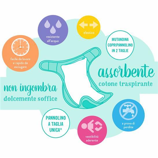 20 x inserti mioduo 4 x cover mioduo TG1 4X cover mioduo TG2 50 x veline pannolino 100g x igienizzante bucato bebè 1 x wet bag( BOX TESSUTO) utilizzabile per contenere i pannolini sistemati.