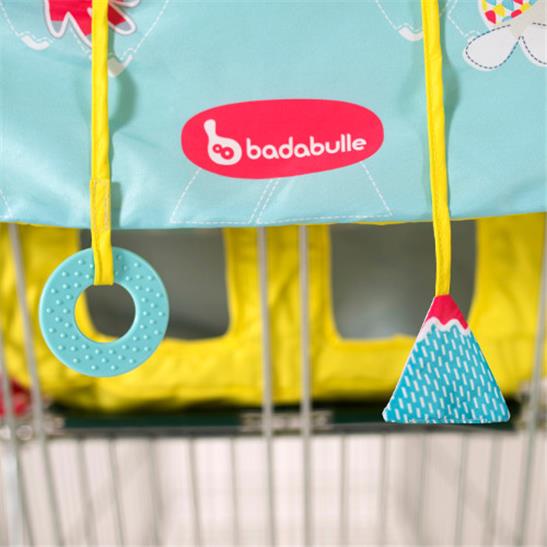 Protezione intelligente per carrelli. Igienico: il bambino non rosicchia più la sbarra o la gettoniera del carrello Intelligente: 1 giocattolo di carta scoppiettante e 1 anello da dentizione Comodo: lavabile in lavatrice Piegato ultra compatto!