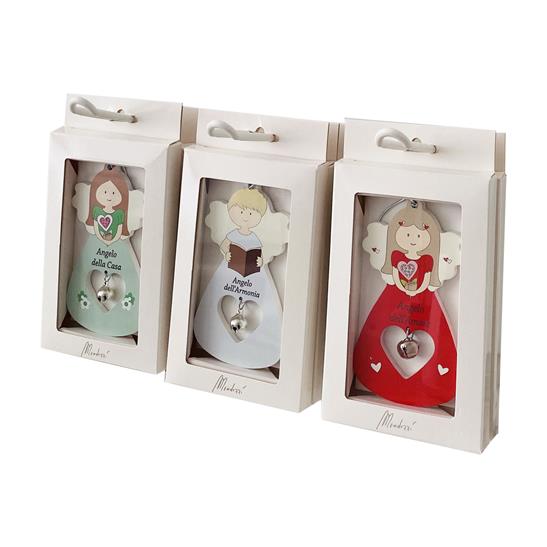 100% Made in Italy Dimensione: h 13cm Angioletto con sonaglio in legno colorato Bomboniera/idea regalo Confezione regalo ANGELO DELL ARMONIA MASCHIO