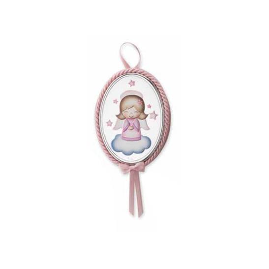 Capoculla in tessuto e placca in argento laminato rosa. Medaglione prima infanzia. Bellissimo prodotto per un’originale idea regalo.