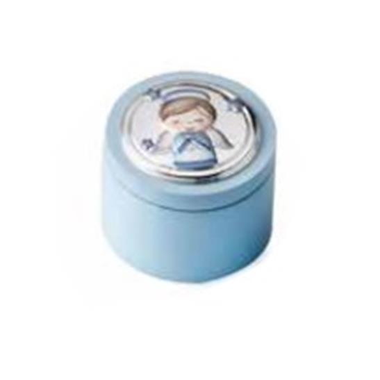 Scatolina porta dentino con placca in argento PVD con angelo celeste. Bellissimo prodotto per un’originale idea regalo.