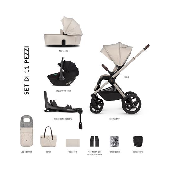 Cosa è incluso? Telaio Navicella Seduta del passeggino Sacco nanna per passeggino Fasciatoio Borsa zaino Mamma Parapioggia Zanzariera ——————————————– *Adattatori per seggiolino auto *Seggiolino Auto Venicci Tiago – Beige *Seggiolino Auto Venicci Tiago – Black