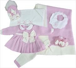 COPRIFASCE COMPLETO DUE PEZZI MAGLIA CON BOTTONI SULLA SCHIENA E PANTALONE CLINICO NASCITA BIMBA 100% LANA MADE IN ITALY RICAMATO A MANO LATTE/ROSA/TORTORA PRIMODI COPRIFASCE COMPLETO DUE PEZZI MA...