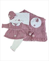 COPRIFASCE COMPLETO 2 PEZZI BIMBA MAGLIA CON BOTTONI SULLA SCHIENA E PANTALONE CLINICO NASCITA 100% LANA MADE IN ITALY RICAMATO A MANO ROSA/MARSALA/TORTORA PRIMODI COPRIFASCE COMPLETO 2 PEZZI BI...