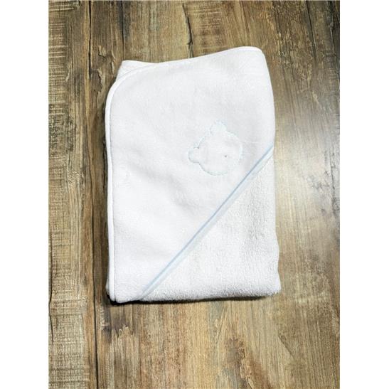 Accappatoio, quadrato di spugna, con cappuccio ideale per i primi bagnetti. Tovaglia, asciugamani in spugna 100% MADE IN ITALY soffice e delicatissima per avvolgere la pelle del/la  tuo/a  bambino/a.